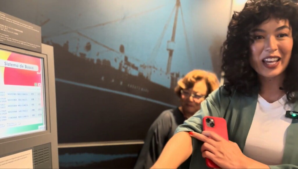 O ponto alto foi encontrar o registro do meu avô nos arquivos do museu: o nome dele, o navio em que veio, as datas de saída do Japão e chegada ao Brasil… Foi de cortar o coração. Nem tenho palavras para descrever a emoção de ver parte da minha história materializada ali. [risos emocionados]